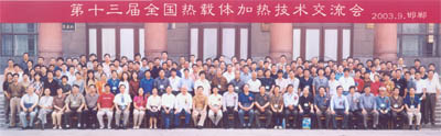 瀚邦公司總工程師劉世武先生,2003年9月在河北邯鄲市主持召開的熱載體加熱技術委員會第三屆第一次全委擴大會議暨第十三屆全國熱載體加熱技術交流會上同與會代表合影,前排右十為劉世武先生。